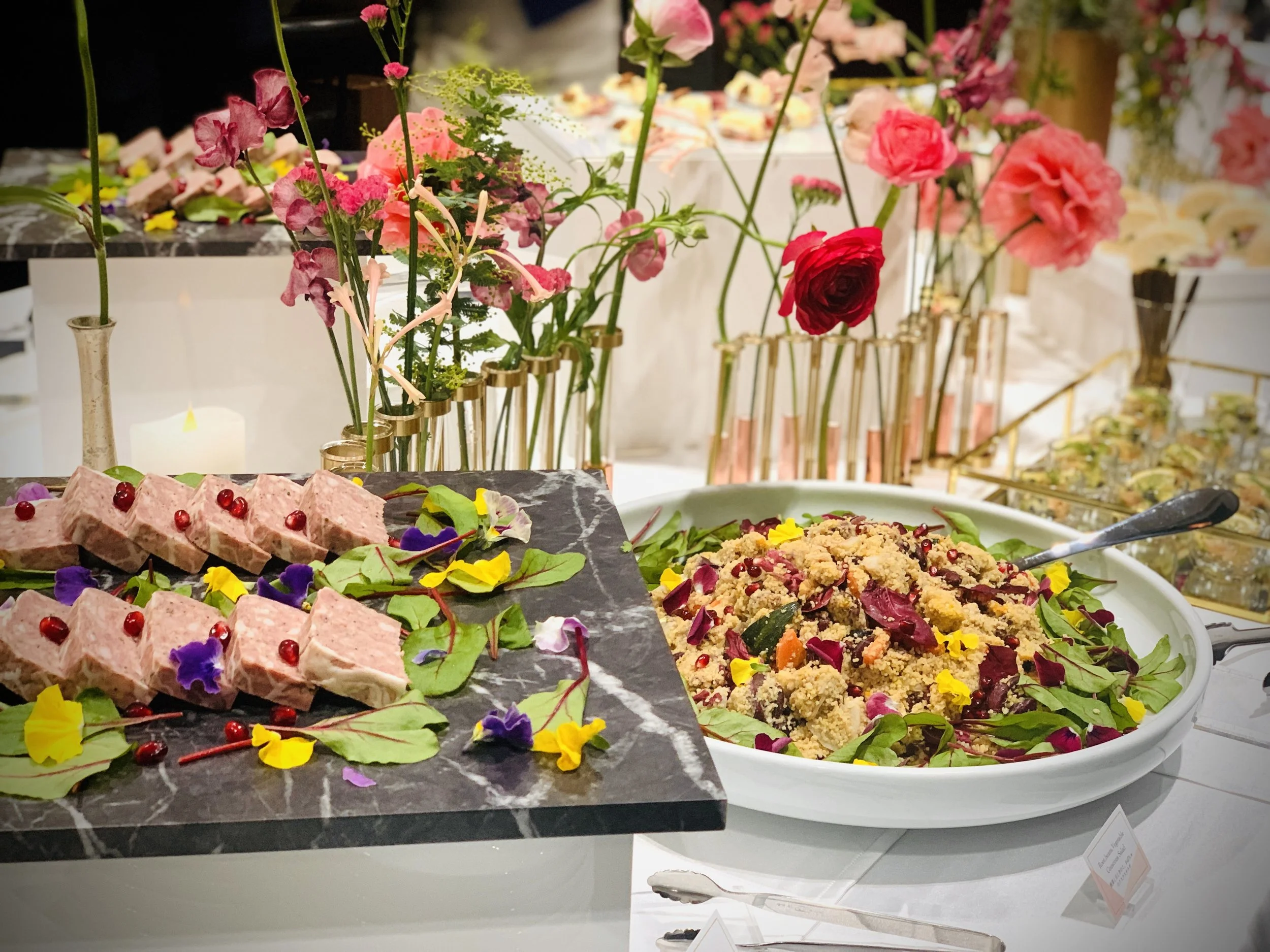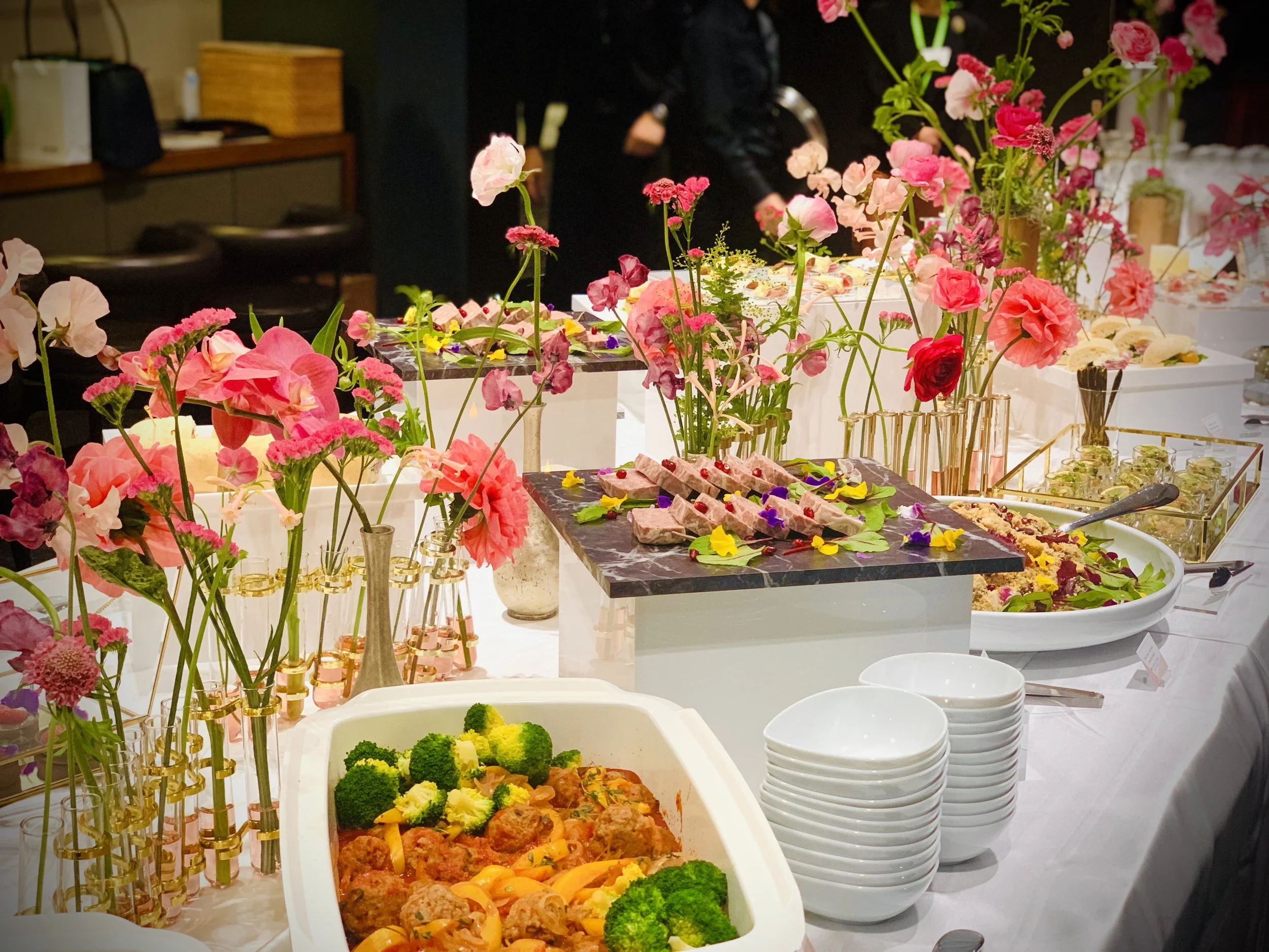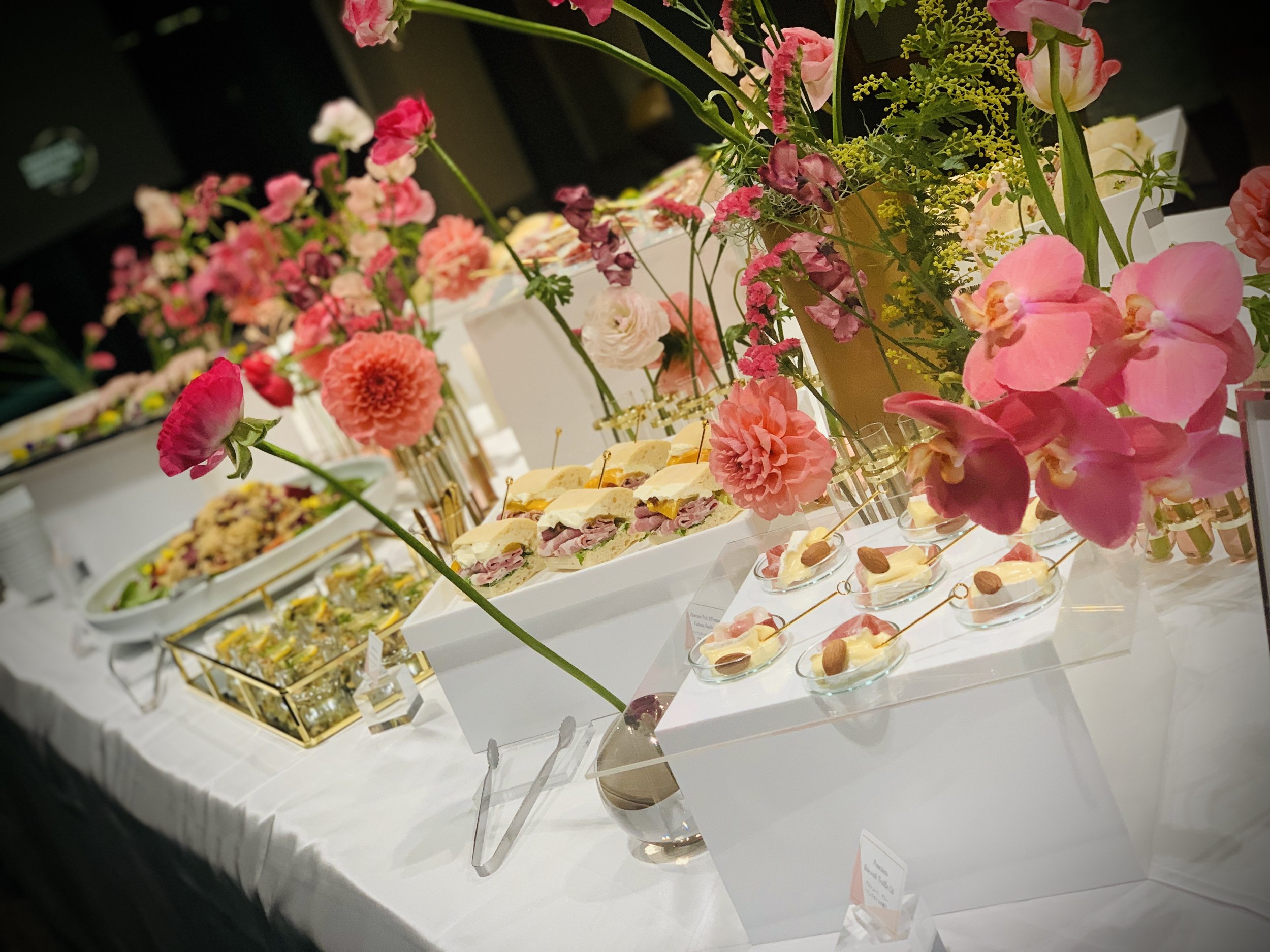 某コンサルティング会社主催、クライアント企業様女性エグゼクティブ向けワークショップ&レセプション。女性らしい色遣いとデコレーション、メニュー構成でコーディネートさせて頂きました。